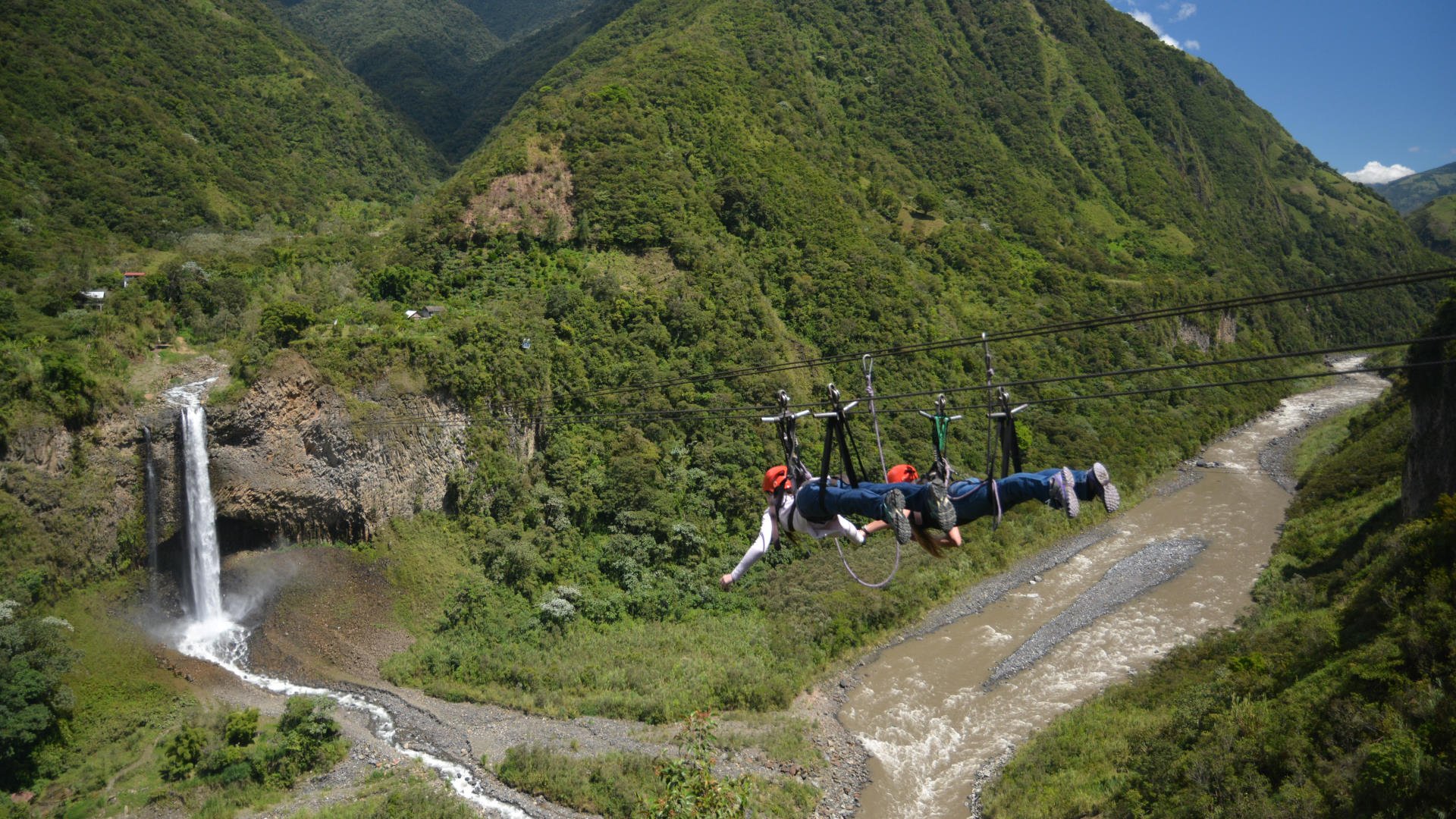 On this route, you can also visit Fantasías de Volar, which offers a super hyper mega extreme swing, over 70 meters of pendulum, followed by Pasarela Diamante, a 45-meter-long glass platform located 1,000 meters above the city of Baños de Agua Santa.